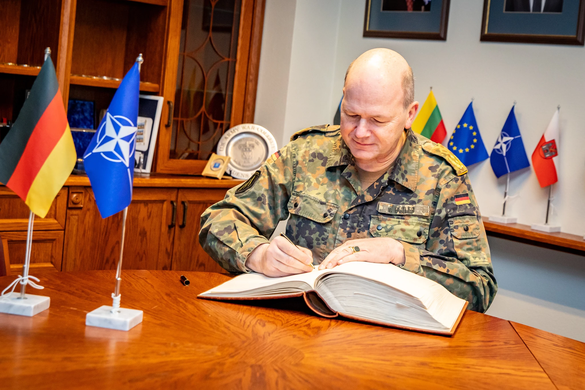 MG von Butler was welcomed by the Commandant of BALTDEFCOL, BG Alvydas Šiuparis; the Deputy Commandant and Chief of Staff, COL Jonathan Huxley; the Director of the Department of Military Studies, COL Toomas Möls; and NATO Joint Operations Lecturer, LTC (ret) Albertas Kondrotas.